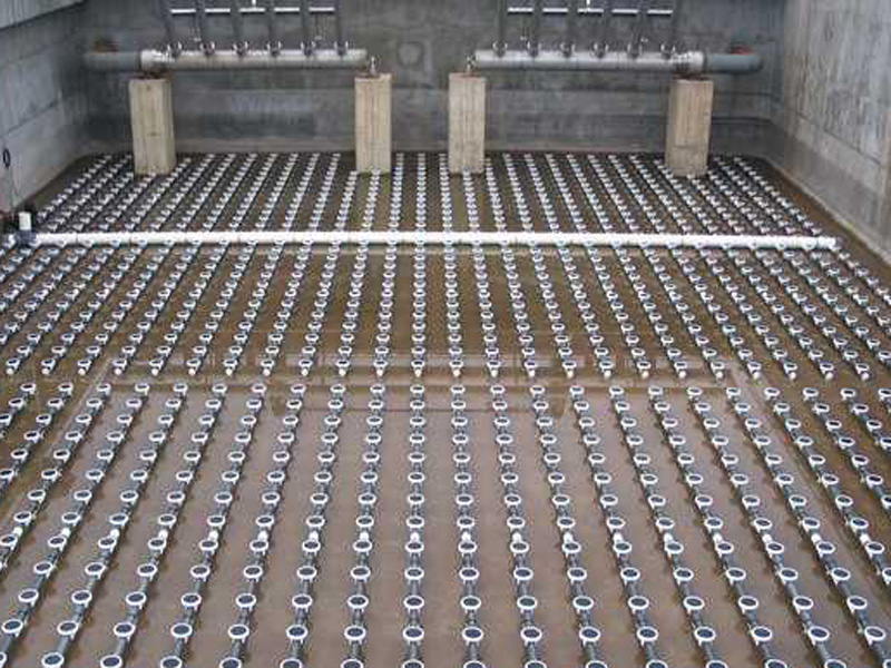 膜片式微孔曝气器80年代研制的最新型曝气装置,该装置曝气气泡直径小,气液界面直径小,气液界面积大,气泡扩散均匀,不会产生孔眼堵塞,耐腐蚀性强,经上海同济大学环境工程学院和中国市政工程华北设计院进行清水和污水充氧测试,并经50多家用户多年使用效果良好(比常规产品固定旋混式曝气器散流式曝气器曝气软管能耗降低40%,或增加污水处理量40%)。特别适用于城市污水和大型工厂新建扩建和老曝气池改造,且曝气池可间歇运行。
