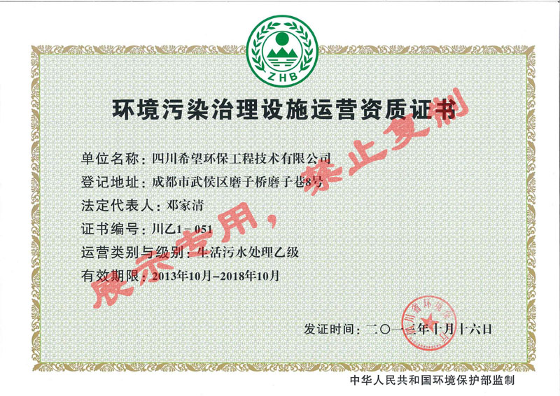 我公司拥有环境污染治理设施运营证书(工业和生活污水),可承接各种工业废水